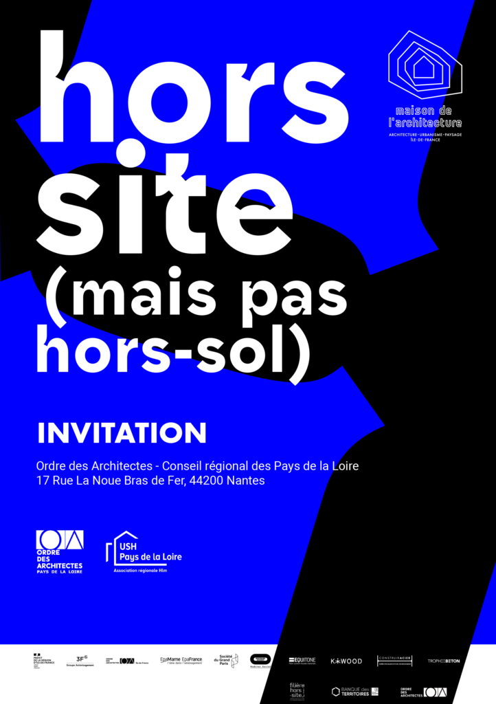 Du 17 octobre au 19 décembre 2025, l’exposition « Hors-site (mais pas hors sol) » produite par la Maison de l’architecture Île-de-France est présentée dans la galerie de l’Ordre des Architectes des Pays de la Loire, située au 17 rue La Noue Bras de Fer à Nantes.